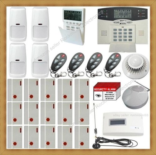 AD10B-15w4mkg Advanced GSM Wireless Home Business Security System Burglar Alarm with Auto-Dialer1).When emergency occurs, it will automatically dial up to 6 phone numbers until reaches someone. 2).Then it will play your own personal recorded message. You can listen into the home and call back to take any actions: arm system again, disarm system, blare siren again or call the police etc. 3).With this advanced Home Security System, you can call your home phone and take actions to protect your home and beloved ones anytime, anywhere in the world! 4).Our Home Security System is absolutely INTELLIGENT! It covers up to 32 wireless zones and 8 wired zones, and 8 remote controller zones! And it also can accept unlimited wireless sirens. 5).It has defence zone verification function and preset fully and separately disarming function! For example, you can preset Motion detector in Burglar zone so that it can be separately disarmed by all-in-one keypad and remotes. 6). All functions are programmed and keypad is password protected. [**Items included**]: 1 x Wireless AD10B Digital Panel. 1 x GSM Dialer, 1 x Wireless Portable Keypad, 1 x Wireless Smoke Detector. 4 x Wireless KeyChain Remote Controllers. 15 x Wireless Window/Door Sensor. 4 x Wireless Pet-Immune Motion Detector. 1 x Wireless Siren. 6 x Security Decals. 1 x English User's Manual. (And power adapters, phone cable, hard wares, batteries and etc. are included.)