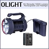 Olight X6-MARAUDER 5000 Lumens Rechargeable LED Searchlight w/ 6X Cree XM-L T6 LCDs Bundle Including Smith & Wesson Special Operations Tactical Knife & Watch Set