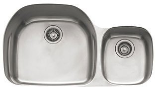 #Elements Kitchen Sink Double Basin Stainless SteelShouldn t your sink reflect your individuality? Imagine a countertop, solid surface or natural stone, with integral sinks that suit the unique way that you prepare food and clean up. Elements work in tandem or alone. Your kitchen is like no other. Double Undermounts Specifically designed for undermounting in solid surface countertops. Optional accessories may be used. 18/10 chromium/nickel stainless steel, 18 gauge. Available Accessories: Drain Basket (PR-50) . Grid Drainers (PR-31 for PRX series only and PR-36 for either series) . Colander (CP-80) . Dimensions 34" X 19"